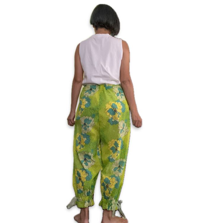 インドハンドプリント 花柄ギャザーパンツ
