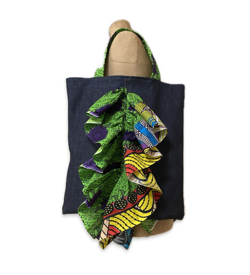 岡山デニム × アフリカンプリントフリル トートバッグ